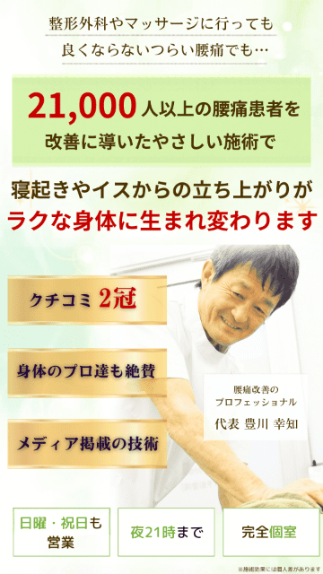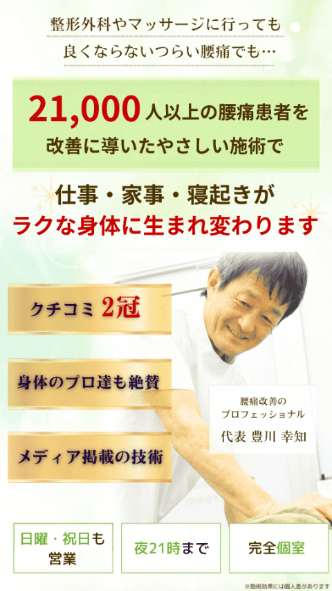 当院は腰痛の改善に特化した専門院です。 これまでに21,000人以上の腰痛を見てきました。