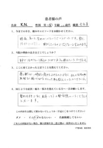 坐骨神経痛は初めてだったので不安だったが、自分がどういう体の状態なのか、知れたのがよかった。