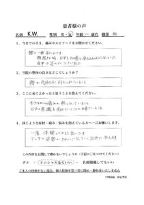 薬を飲んで一時的に痛みを止めるのではなく、日々の生活の中で、無理なく続けられるストレッチ等を教えていただけたこと。